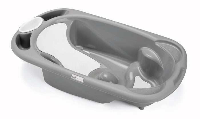 The anatomical bathtub is designed for dual-sided use, featuring two anti-slip rubber inserts for safety and comfort.