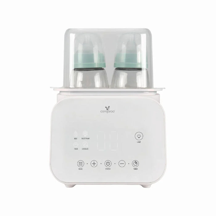 4in1 - milk warming, baby food warming, breast milk defrosting and sterilization. Digital control panel with touch screen. Manual temperature control: from 35°C - 50°C when warming milk and from 60°C till 80°C when warming food. Large capacity: warm/ sterilize 2 baby bottles at the same time. The time for warming food and milk can be adjusted manually. Included a basket for the baby bottles and jars with baby food. The sterilization time is approximately 10 minutes. You can use the appliance to sterilize small accessories - such as baby silicone teats or soothers. Automatic shutdown after sterilization. Rated Power: 500W.