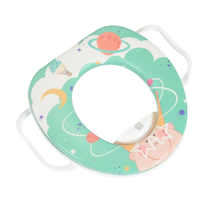 The children`s toilet seat adapter Wiggle is designed for little ones aged 18 months and up, with a maximum weight capacity of 25 kg. It is suitable for use with standard oval-shaped toilet bowls and provides a safe and comfortable toilet training experience. The seat features a soft, removable cushion that ensures added comfort and is easy to clean. Practical side handles offer extra stability and security for the child during use. Made from safe, non-toxic materials and paints, the adapter supports your child`s transition from potty to regular toilet while keeping hygiene and safety a top priority.