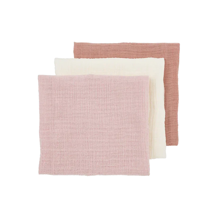 Meyco 3 Pack Muslin Cloths Pre-washed Muslin Soft Rose/Rose/Natural