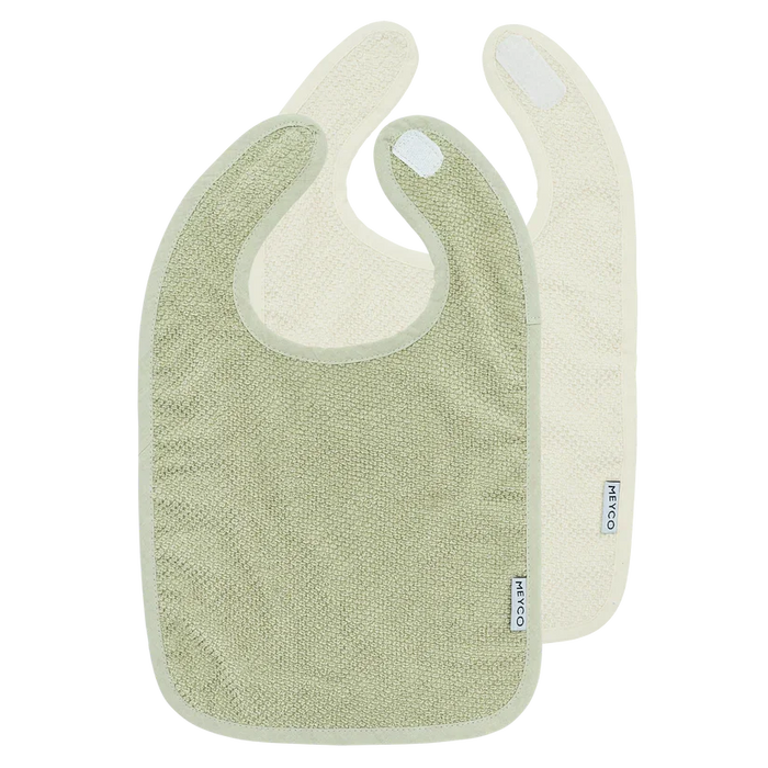 These bibs come in a handy 2-pack, so you always have a clean one when the other one is in the washing machine. Thanks to the handy Velcro closure, you can open and close it in a jiffy too. Ideal, right?