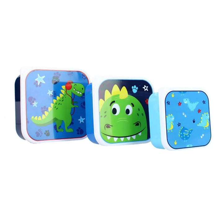 Want to take a piece of fruit to school or some snacks to friends? In this 3-piece set with snack boxes you can easily give your child a snack. The 3 snack boxes all have a different size, so you can give your child the right box for every snack time. The prints on the front of the snack boxes are different too. On the largest we see a dino with his headphones rex, on the second a close-up of the dino and on the third small dino's. The snack boxes can be closed with an elastic band.