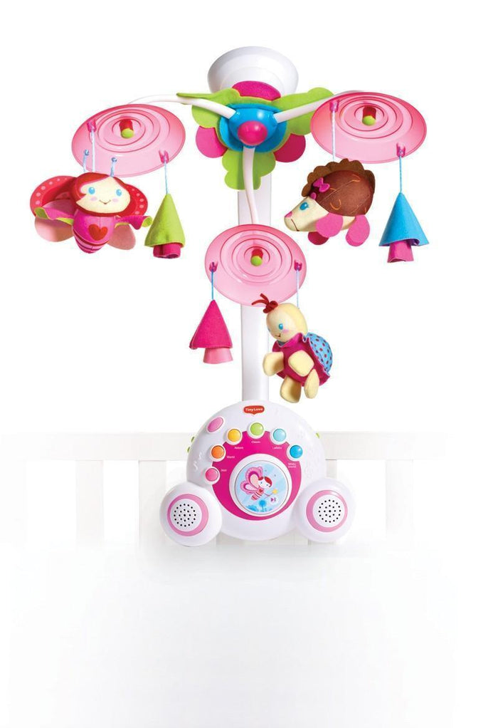 Suitable from birth to 18 months, the Tiny Love Soothe and Groove Mobile grows with baby from a mobile to a crib side music box with night light and a portable music box.