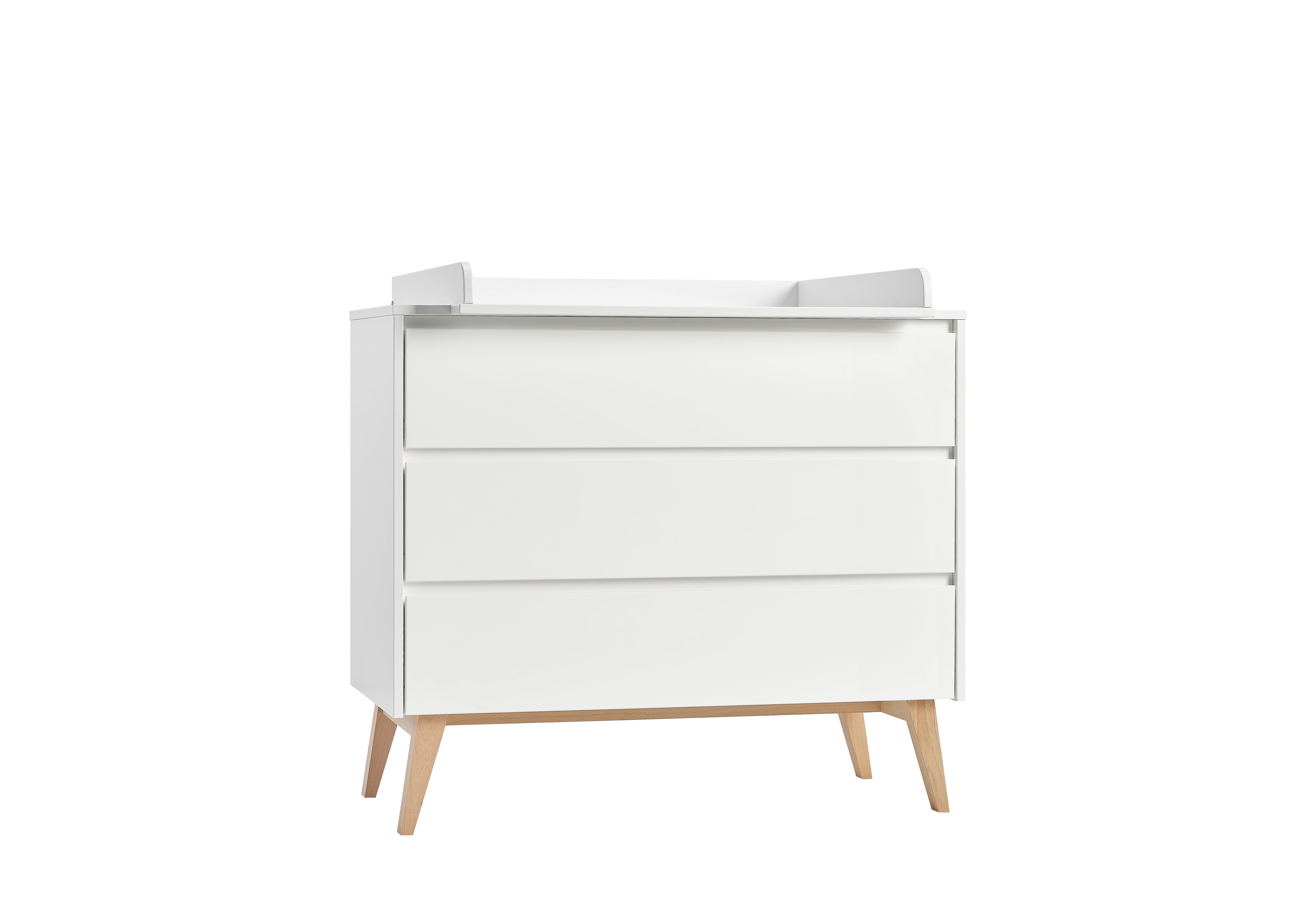 The spacious Swing chest of drawers combines elegant design with everyday practicality, making it a perfect addition to any baby or children’s room. It features three large drawers equipped with high-quality guides, including a brake and self-closing system, ensuring smooth and silent operation.
