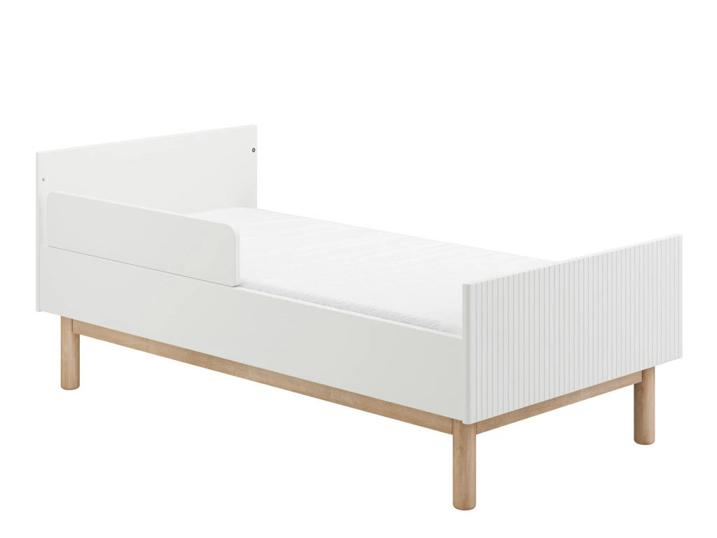 The Miloo collection cot-bed from Pinio, size 70×140 cm in white, offers elegant design and practical functionality. Designed to grow with your child, from infant to toddler bed stage.