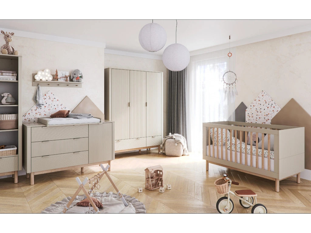 Pinio Miloo – Cot/Convertible Bed 70×140 cm in Champange The Miloo collection cot-bed from Pinio, size 70×140 cm in white, offers elegant design and practical functionality. Designed to grow with your child, from infant to toddler bed stage. Features Mattress size: 70×140 cm.  2-in-1 system: Converts from cot to toddler bed by removing side bars/rails.  Three adjustable mattress heights for...