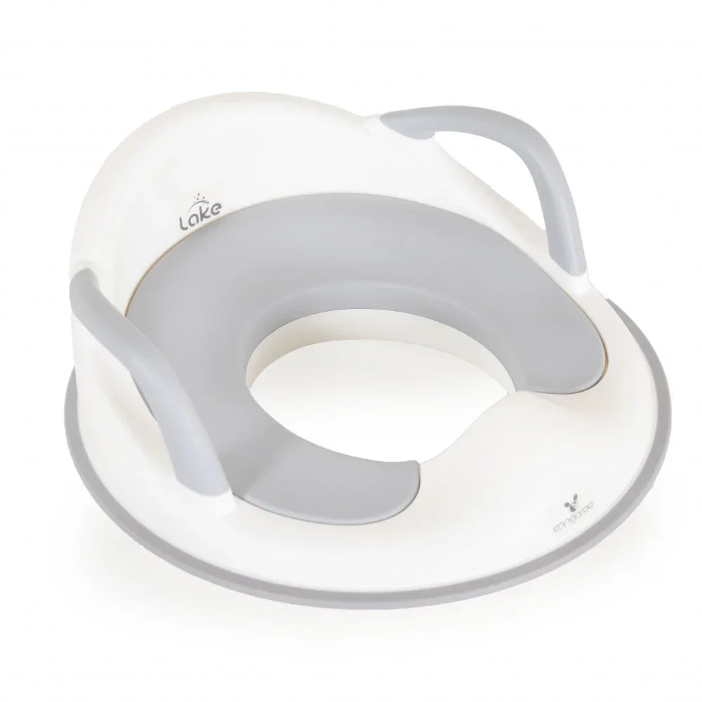We present the Lake toilet seat adapter – the perfect solution for a smooth transition from potty to toilet. With its comfortable ergonomic shape, PU seat, and secure attachment, this adapter provides maximum safety and comfort for your child. The backrest supports proper posture, while the built-in handles ensure safety when sitting down and standing up. Its universal design is compatible with all standard toilet bowls, and its easy cleaning and compact storage make it an indispensable helper in the bathroom. Made from high-quality and safe materials, the Lake is suitable for children over 36 months.