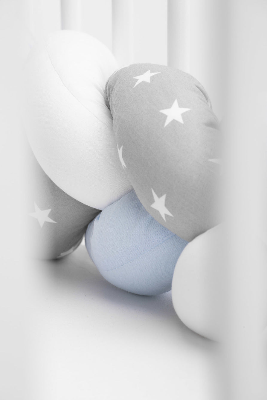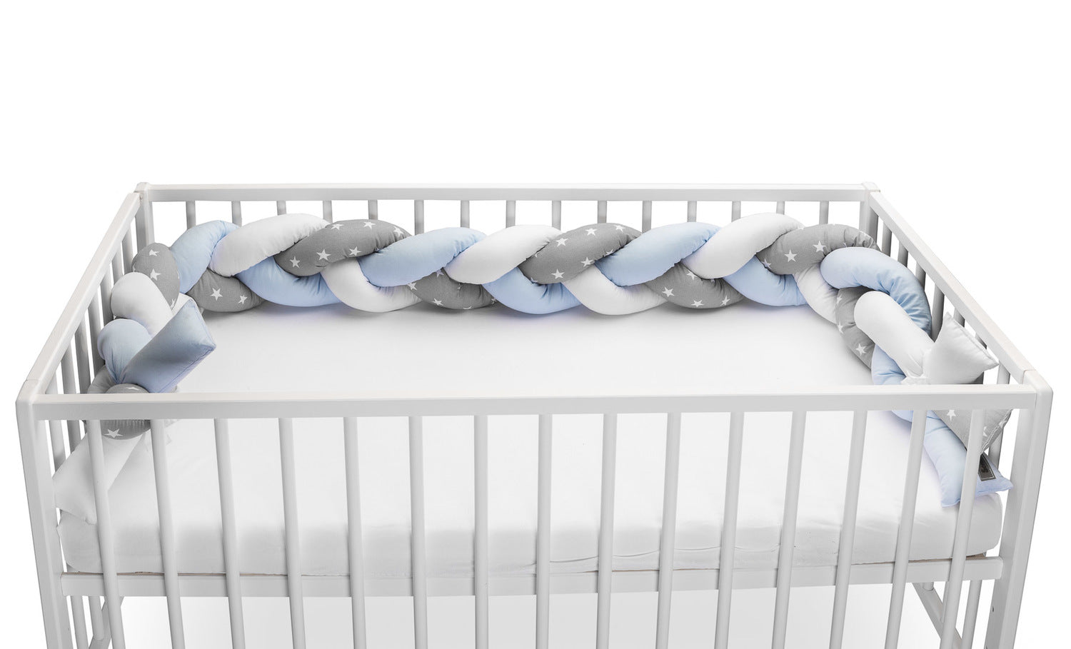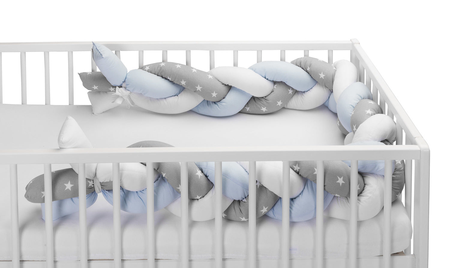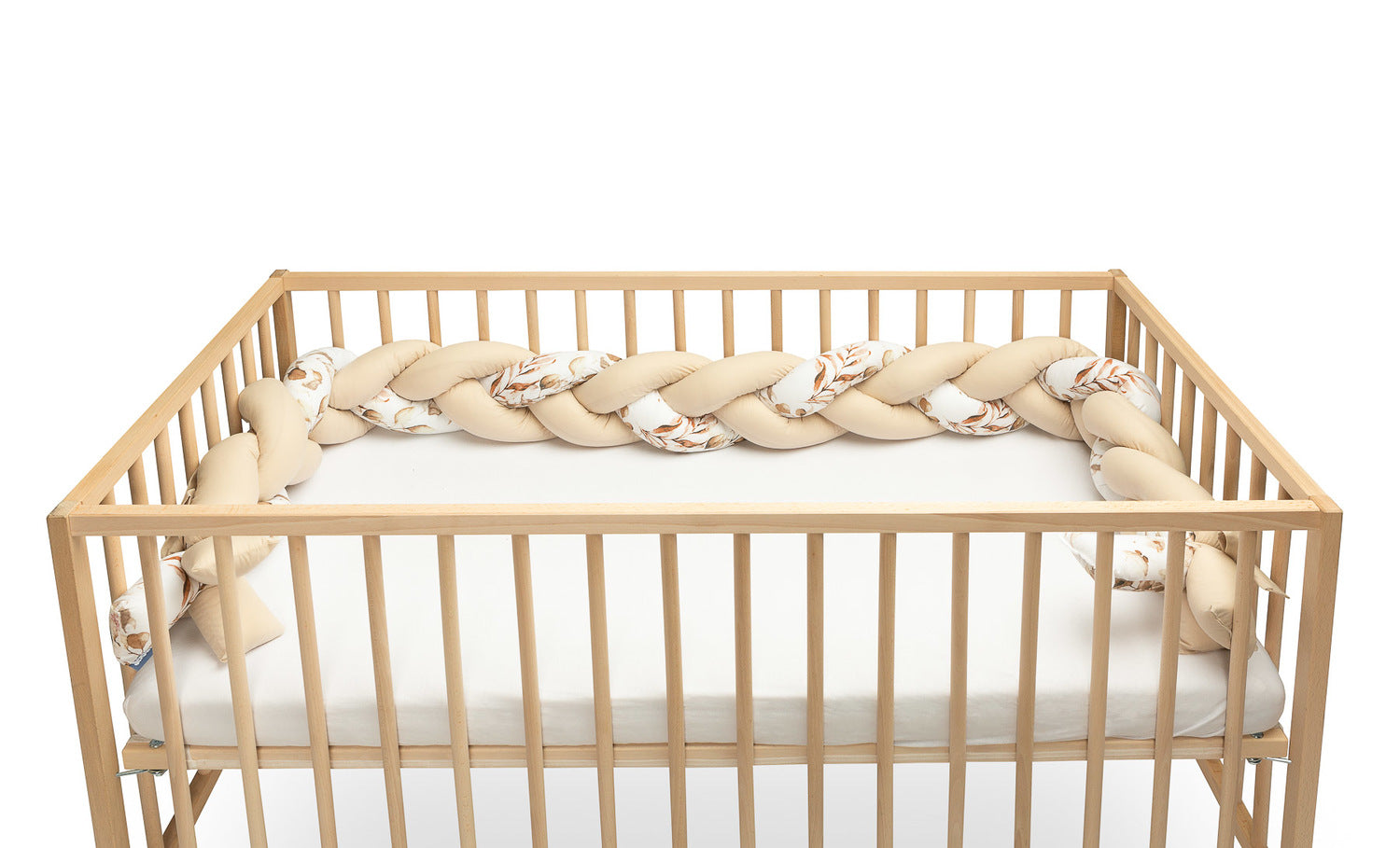 Each end of the braid is finished with cotton ribbons, allowing you to securely attach the bumper to the crib. When properly tied, it protects your baby from bumping into crib slats and helps ensure a calm and peaceful sleep.