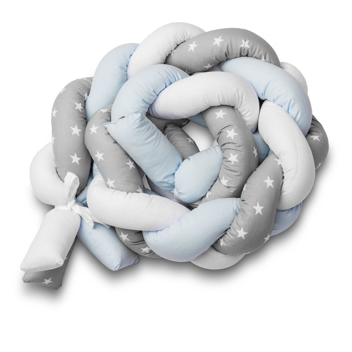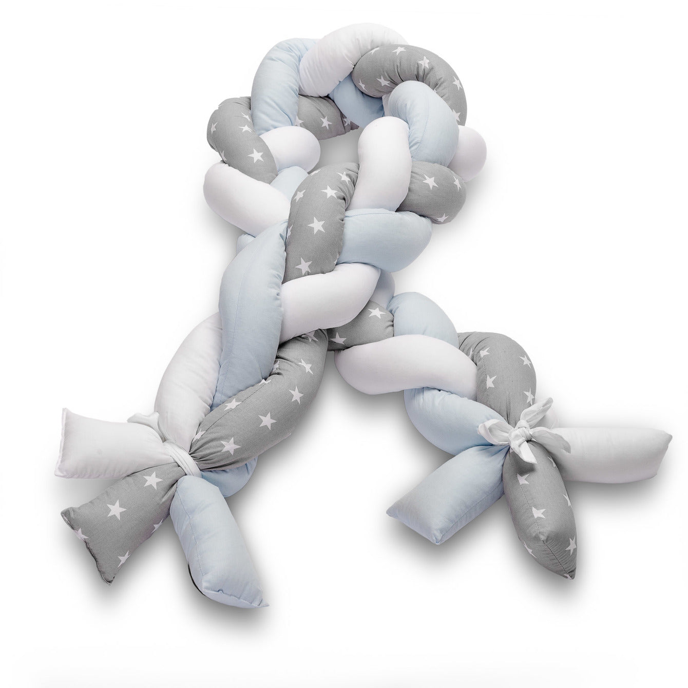 The Sensillo braided crib bumper is soft to the touch and pleasant for everyday use, providing comfort and safety for your baby. It is made from 100% cotton and filled with anti-allergic silicone fibers, making it suitable for delicate baby skin.