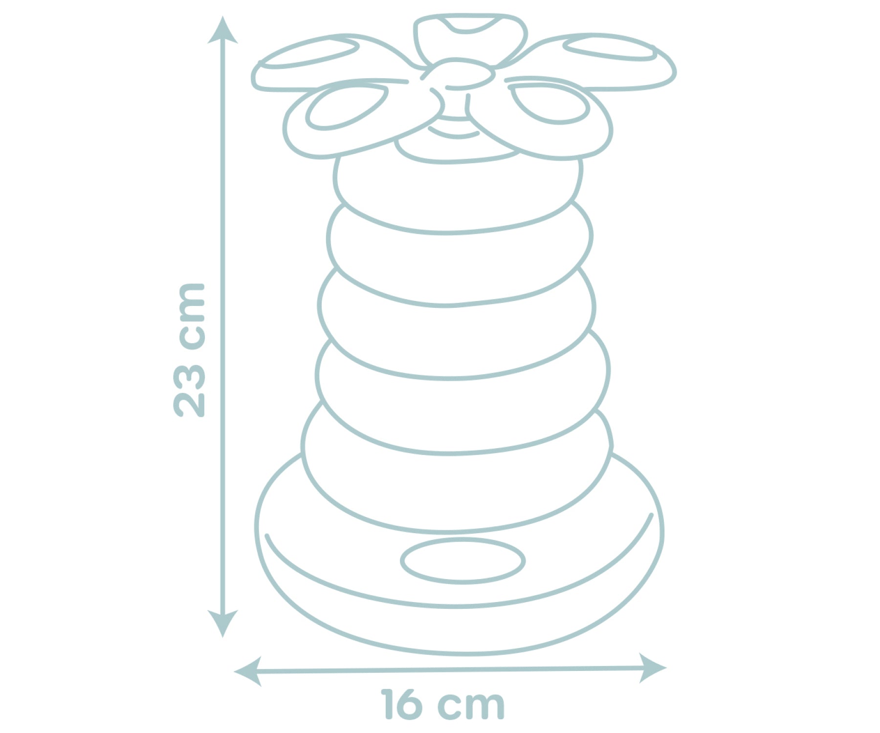 It features 5 colourful rings that can be stacked in order of size, topped with a cute flower piece that spins! Its rounded base allows gentle rocking movement, making playtime even more engaging.