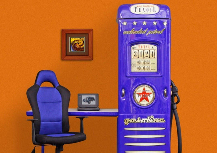 A unique wardrobe for children with a fold-out desk in the shape of a fuel dispenser, available in four colors: red, blue, yellow and white. It is a great complement to the room in which our car-shaped bed is located. The wardrobe is made of furniture board, and the housing is made of colored acrylic.