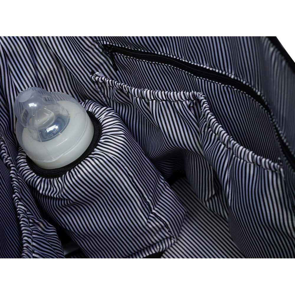 Τσάντα αλλαγής πάνας της εταιρείας Osann. Κατασκευασμένη από δερματίνη σε μαύρο χρώμα και μοντέρνο σχεδιασμό. Η κύρια θήκη της διαθέτει θερμομονωτική θέση για το μπουκάλι του μωρού σας και επιπλέον θέσεις για τα υπόλοιπα αντικείμενα ώστε να είναι πάντα οργανωμένα και τακτοποιημένα. Διαθέτει μαλακό στρωματάκι για την αλλαγή της πάνας και σακούλα από PVC για να τοποθετήσετε τα βρώμικα ή βρεγμένα ρούχα. Μπορείτε να την κρατήσετε από τις λαβές ή να την κρεμάστε στον ώμο σας αφήνοντας τα χέρια σας ελεύθερα.