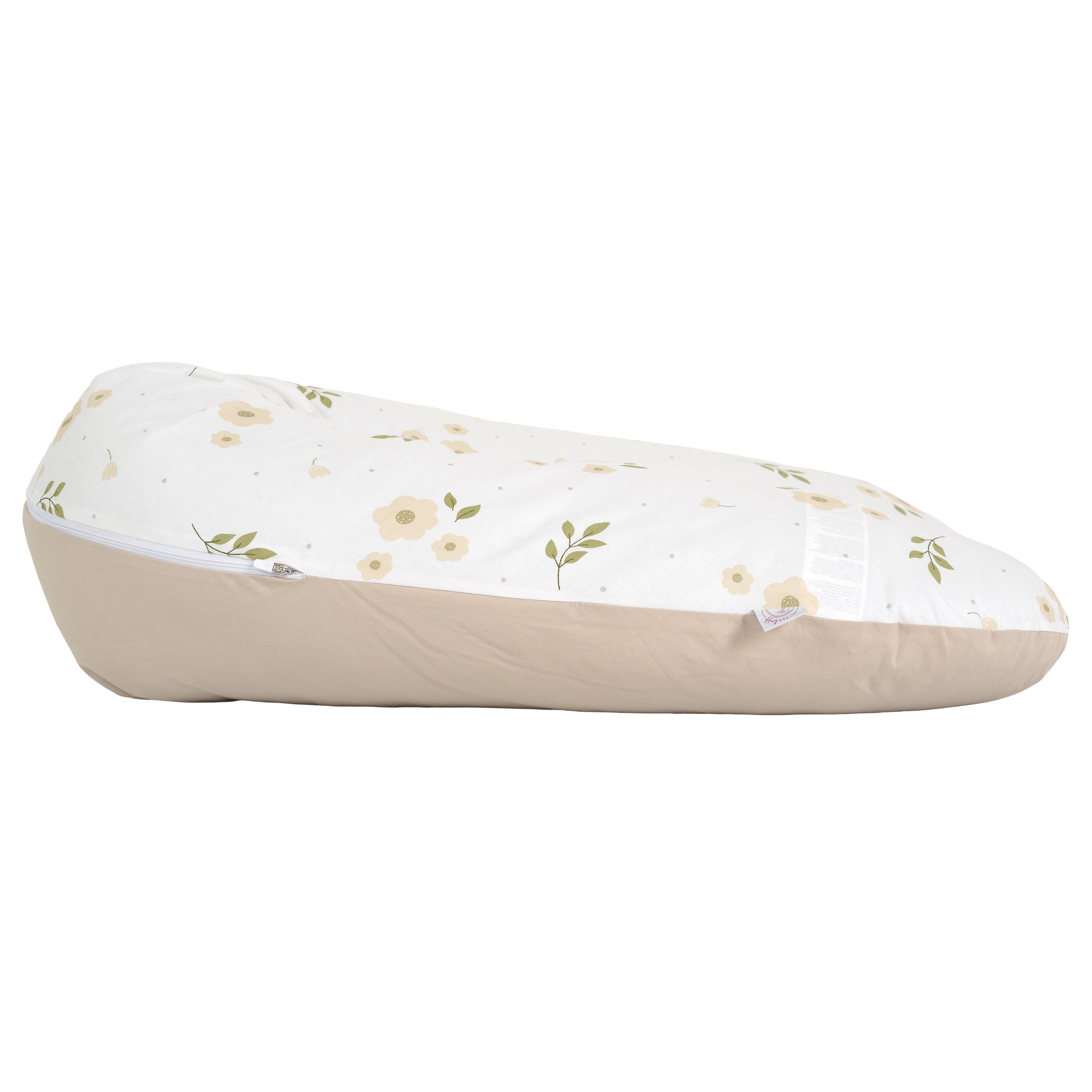 The Hugsy nursing pillow by HUGZZZ is designed to provide stable support and maximum comfort during pregnancy and after childbirth. Its ergonomic shape helps maintain proper body alignment during sleep, reducing tension in the back, lower back, hips, and legs while gently supporting the belly.