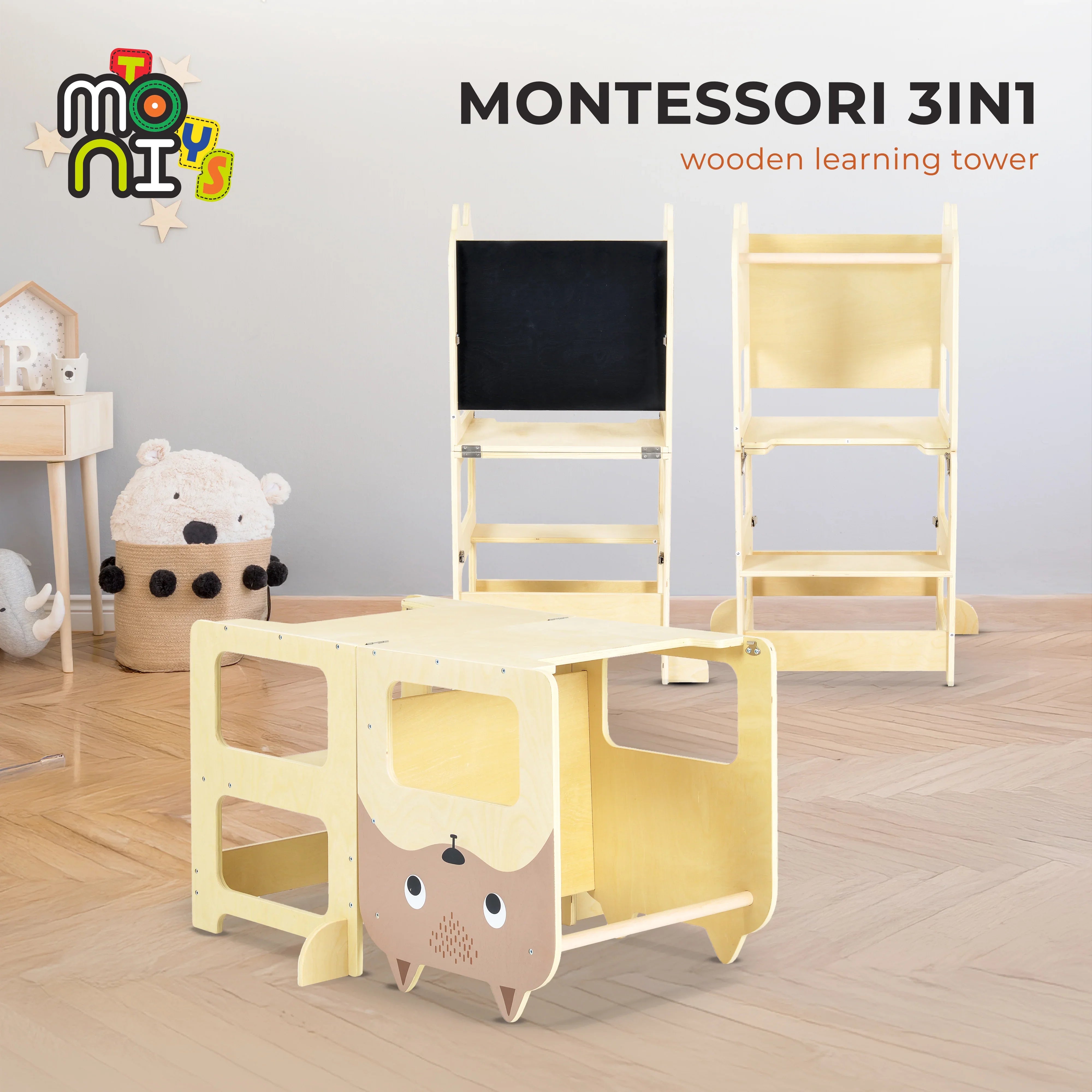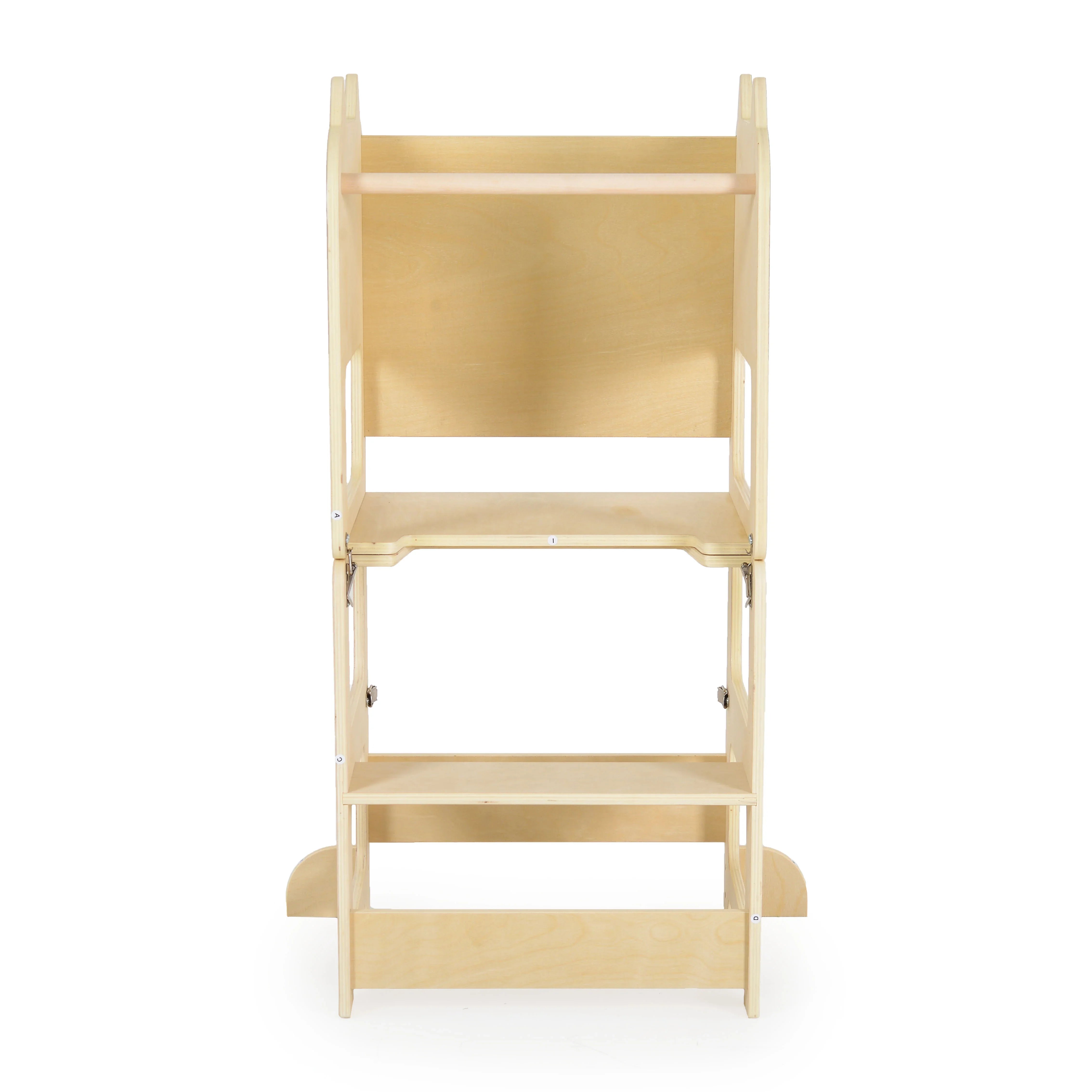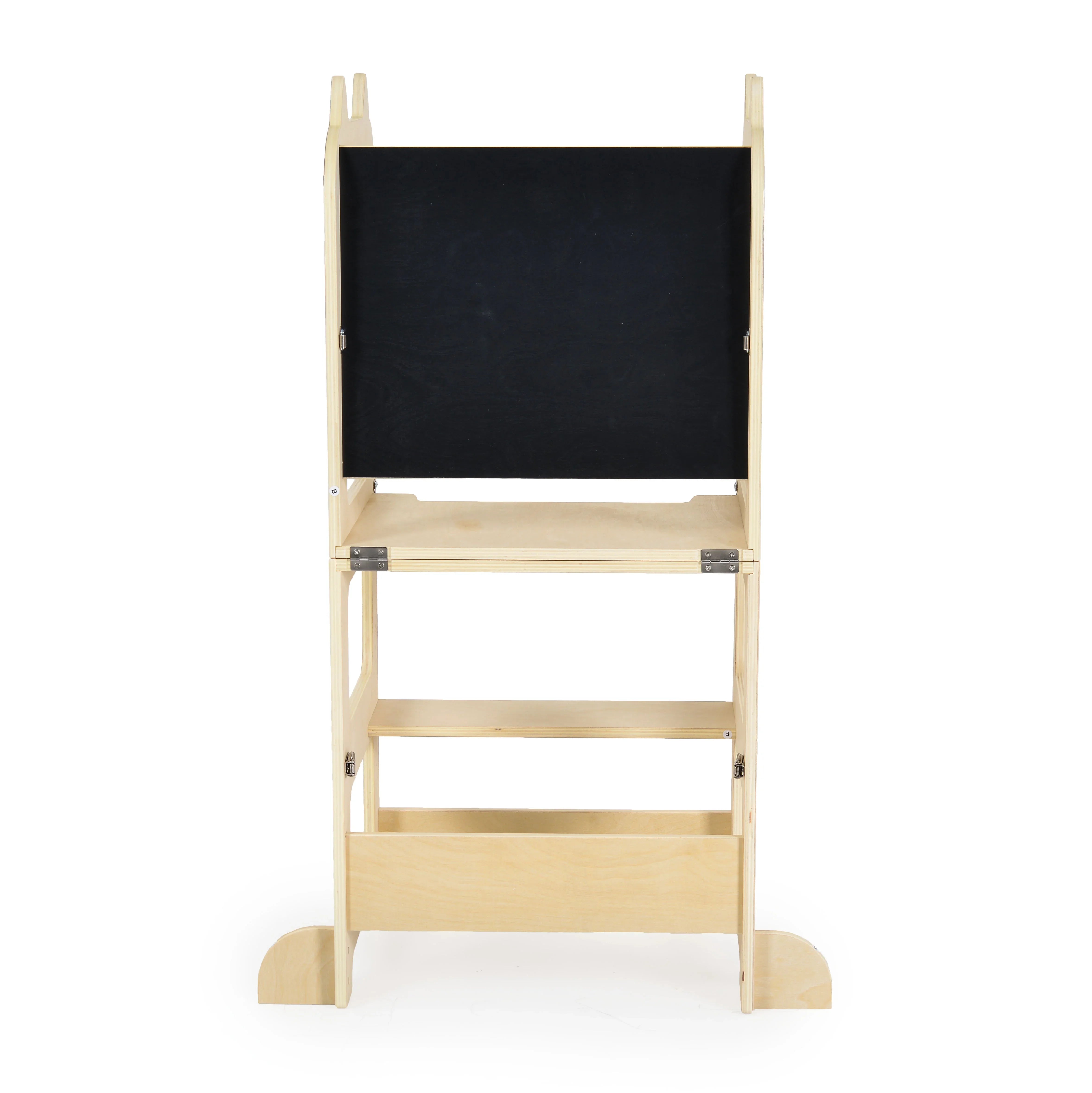 Learning Tower 3 in 1. Specially developed and designed for easy and safe access of children to the kitchen counter, table or sink. A four-sided handrail with steps ensures safe boarding and disembarking of the child. Learning tower, desk with bench and blackboard for drawing. Light and compact construction.