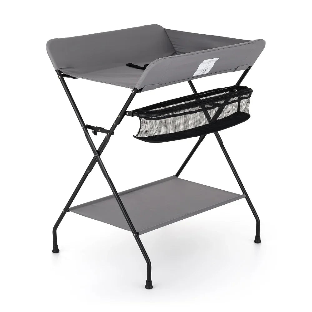 The multifunctional changing table makes everyday life easier for parents. The construction makes it possible to position the changing unit at the right height to eliminate bad posture during changing, resulting in back pain. The table is equipped with side compartments for storage and easy access to everything you will need when changing your baby. The changing table can be easily folded to save space. The construction is stable and durable. There is a handy shelf at the bottom to put things away.