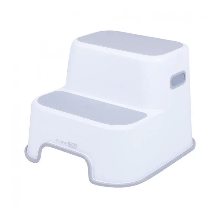 Double step stool with measures 36x33x26 cm and antislip standing surface is useful for bathrooms and other rooms. It helps a child to reach the sink when he wants to clean his teeth or wash his hands, shelfs and all other higher surfaces.