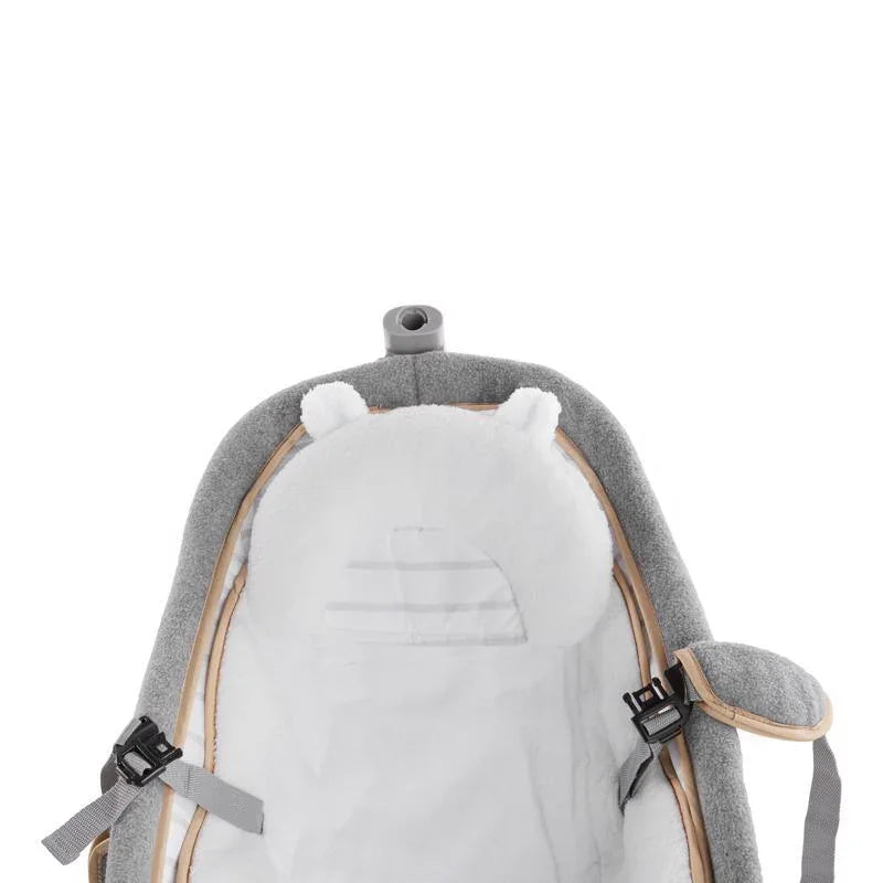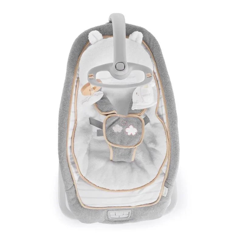 Designed with parenthood in mind.™ This is as chic and modern as a baby seat gets! This contemporary rocker has a one-of-a-kind recline option with three very distinct positions to keep baby comfortable. This seat rocks but also converts to a stationary seat with calming vibrations, nature sounds and music. The toy bar removes so it becomes a handy rocking seat as your baby grows. Possibly the best part of this amazing baby seat from Ingenuity is its great looks and premium, posh fabrics. Remarkably soft fabrics pamper baby in luxurious softness with an added bolster and character head rest that offer extra support for smaller babies and can be removed as baby grows. Even the safety harness is wrapped in soft, fleecy fabrics to protect baby's sensitive skin. This modern platform is designed to fold almost completely flat so storage and transport are easy. You'll love how it looks in your home and baby will love being snuggled in softness.