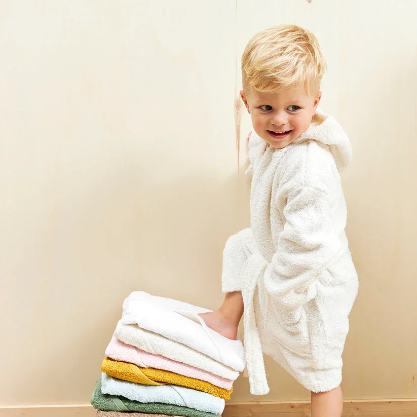 The Meyco basic terry toweling cape is made of soft 100% cotton. The hooded bath cape absorbs moisture well and is nice to wrap your child in after showering, bathing or swimming. Various uni colors are available and can therefore be perfectly combined with the complete Meyco collection.